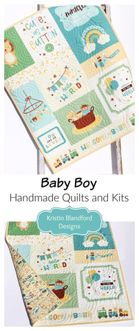 This listing is for a quilt kit featuring a fun little boy fabric line. Quilt will measure approximately 35.5" x 42.75." A simple pattern is included with the kit. Kit includes: