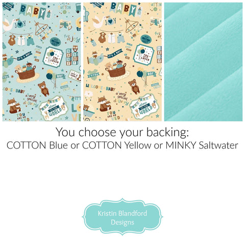 Backing (you choose, COTTON Blue, COTTON Yellow, or MINKY Saltwater, see last image)