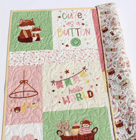 The Pink & Green baby quilt kit is a DIY sewing set featuring a printed panel and coordinating fabrics, designed for makers who want to create a charming nursery blanket with ease. This baby sewing quilt kit includes pre-selected materials and clear instructions, making it an ideal project for beginners and experienced sewists alike looking to craft a custom baby quilt.