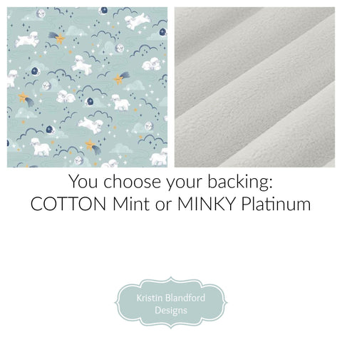 50 inches for Backing (you choose, COTTON Mint or MINKY Platinum, see last image)