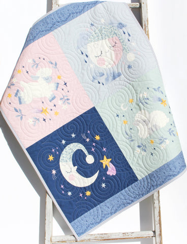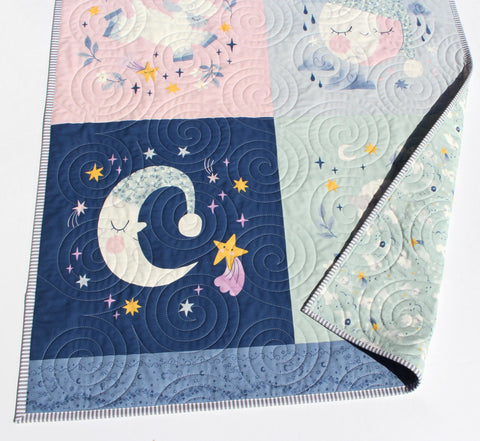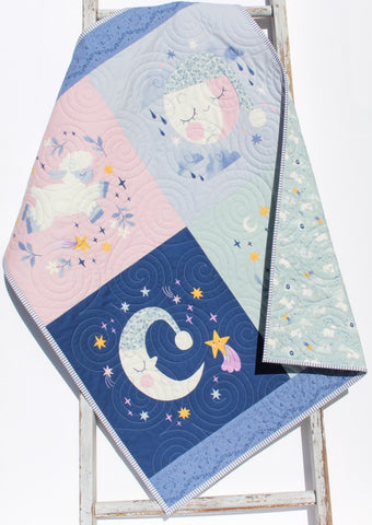 Create a dreamy handmade nursery quilt with this Twinkle Little Star quilt kit, featuring a soothing celestial design with moons, clouds, and stars in soft pastel tones. This baby quilt kit includes everything you need to sew a beautiful quilt top, making it an enjoyable project for confident beginners and experienced quilters alike. Whether you’re stitching for your own nursery or gifting a DIY baby shower project, this quilt kit is a sweet and rewarding creative experience. Quilt will measure approximately 34.5" x 43.25" A simple pattern is included with the kit. It is a simple panel top, no piecing required. Kit includes: