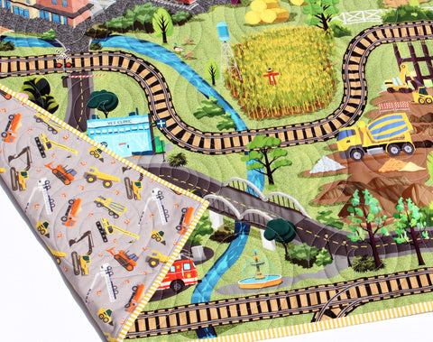 This listing is for a panel Quilt Kit featuring a fun city transportation play-mat fabrics line. Quilt will measure approximately 36" x 43.25". There is no pattern for this kit, simply quilt as desired!
