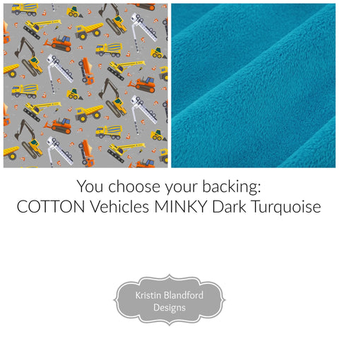 Backing (you choose, COTTON Vehicles or MINKY Dark Turquoise, please see last image)