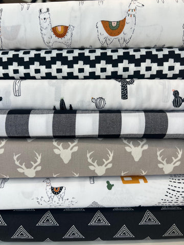 Black and White Fabric Bundle Fat Quarter Half Cuts Art Gallery Fabrics Set Pacha Llama Aztec Tribal Cactus Mountains Boy or Girl AGF Studio