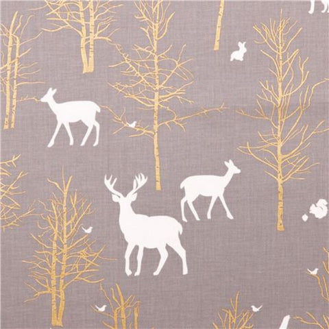 Brambleberry Ridge Fat Quarter Half Yard and Yards Michael Miller Fabrics Gold Metallic Deer Woodland OOP HTF Out of Print Hard to Find